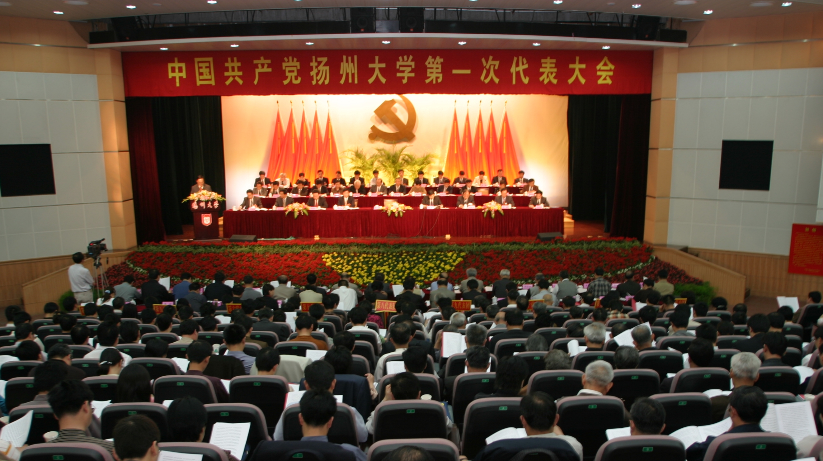 走过13年合并办学历程,我校迎来又一个历史性的时刻——2005年5月28日,中国共产党扬州大学第一次代表大会在荷花池校区大学生活动中心三楼小剧场隆重召开。省委副书记任彦申对大会的召开表示祝贺,教育部社政司等发来贺信,省委组织部、省委教育工委、中共扬州市委有关负责同志到会致辞,热烈祝贺大会的胜利召开。学校群团组织、民主党派向大会发来了贺信。大会代表、特邀代表、列席代表等400多人出席了会议。